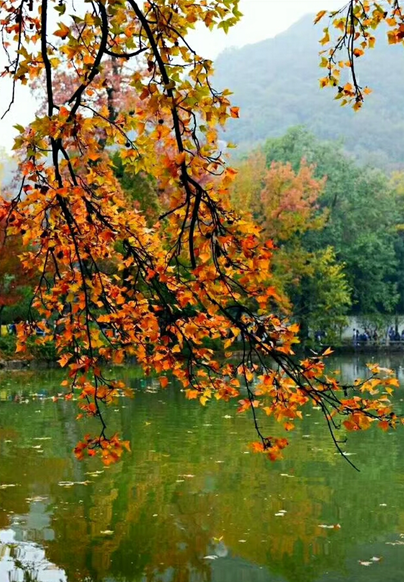 这里的每一片枫叶都犹如有了生命和灵魂,它们各自舒展着秀丽的身姿,各自诉说着婉约的故事,就算在雨里,也有着独有的美丽,绽放着独有的芳华。这里的枫叶、绯红的、火红的、鹅黄的、淡黄的、红黄交映,相映成趣,构划了一幅多彩的油画,使人仿佛步入仙境。